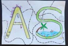 A partir de leurs initiales, les élèves ont traité l'illustration sous forme d'enluminure.