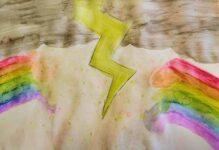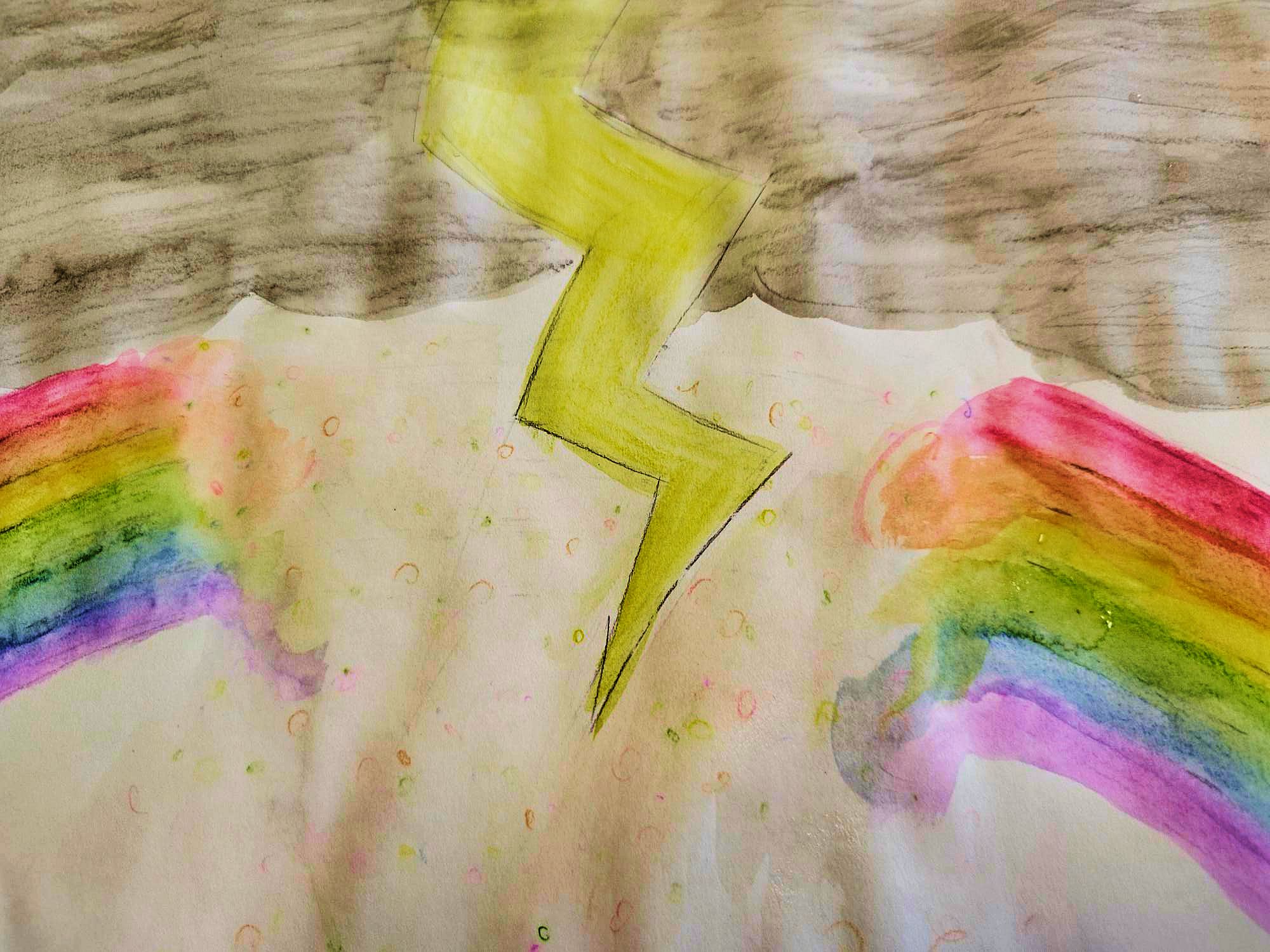 Un orage, une tempête ... et l'arc-en-ciel s'est brisé. Feutres et pastels ont été très actifs pour traduire ce dynamisme…