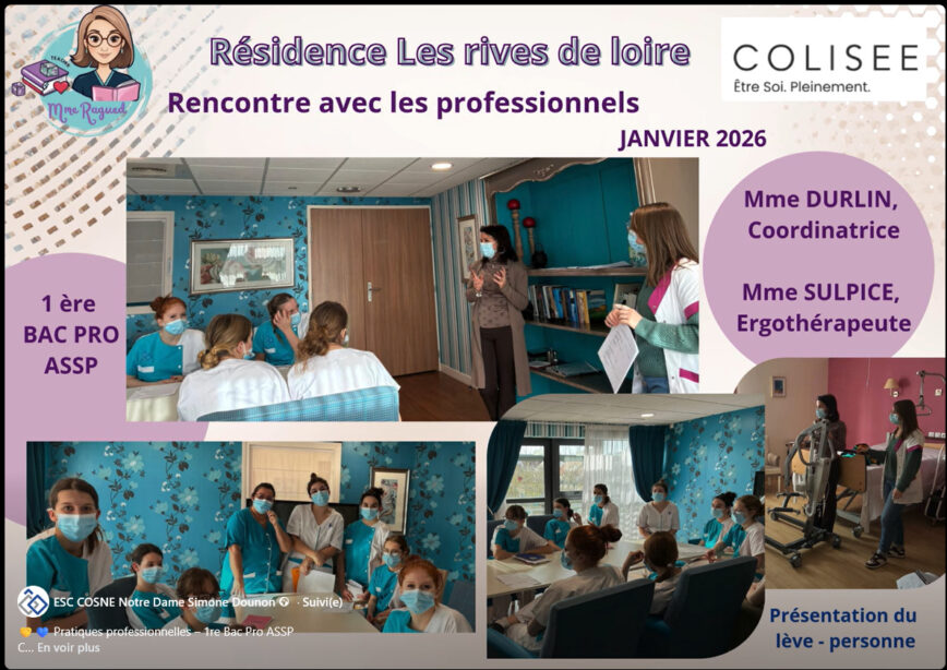 Ce lundi 26 janvier, les élèves de Première Bac Pro ASSP se sont rendus à l’EHPAD Résidence Les Rives de Loire afin de réaliser des pratiques professionnelles en situation réelle.